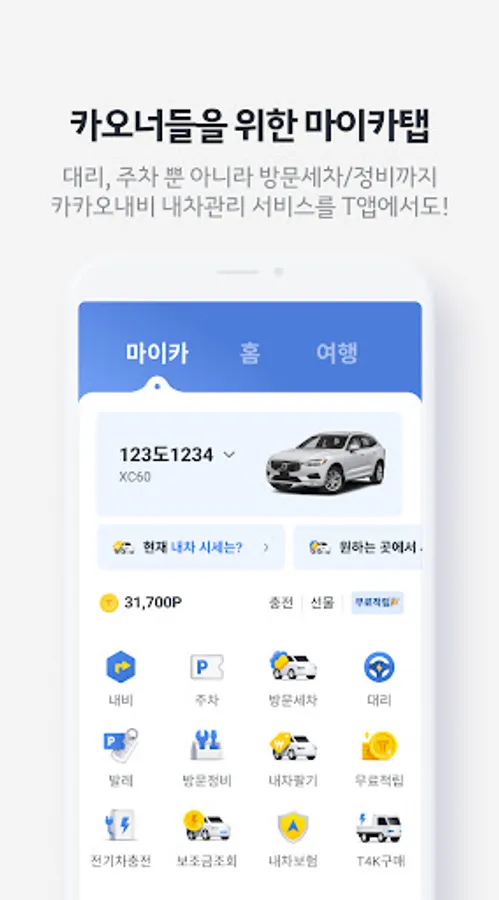 • 'My Car' tab: Car driving/maintenance service for car owners