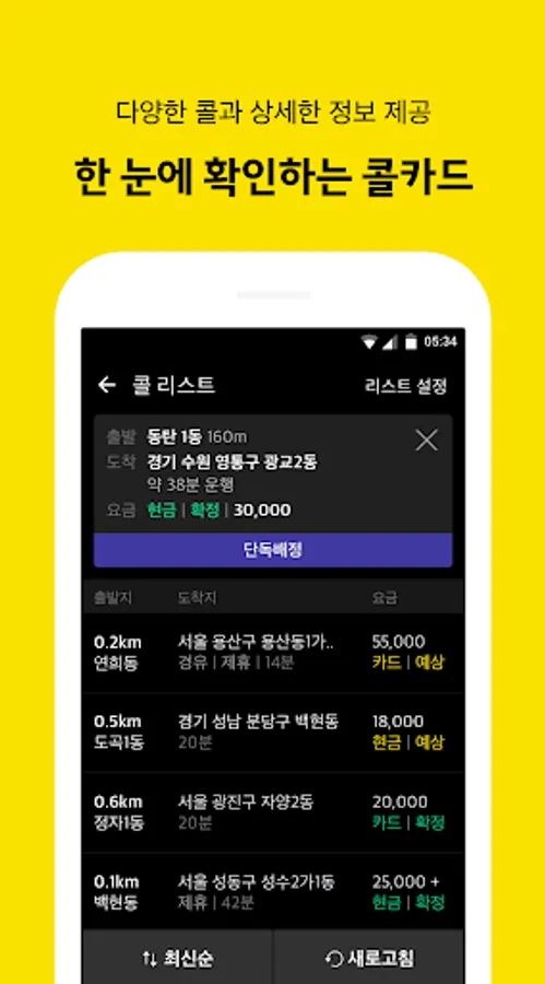 Detailed information of distance from the customer, meeting location, destination and estimated fares is provided with each request.