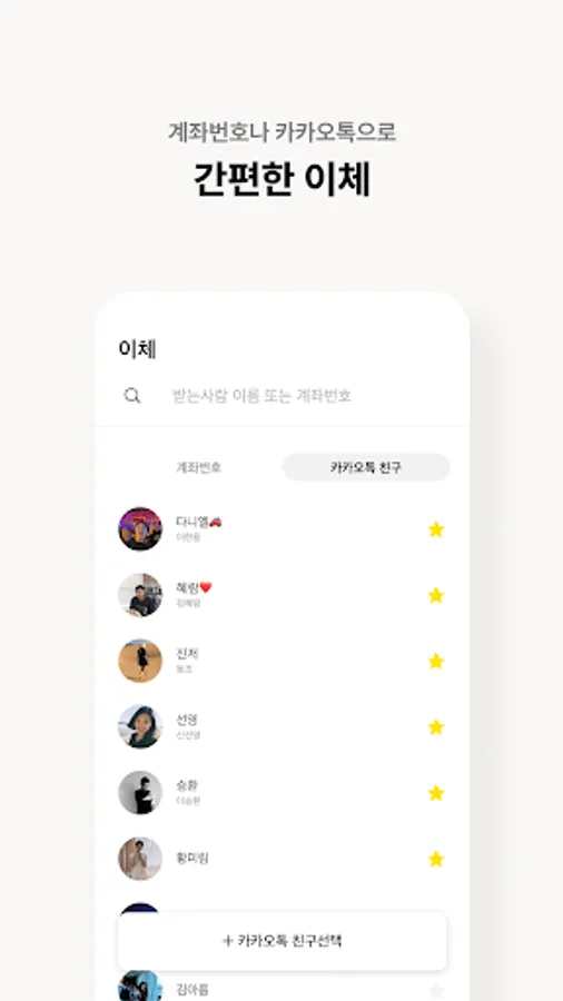 • Easy remittance to a KakaoTalk friend without knowing the account number (remittance is possible even if the other party is not a Kakao Bank customer)