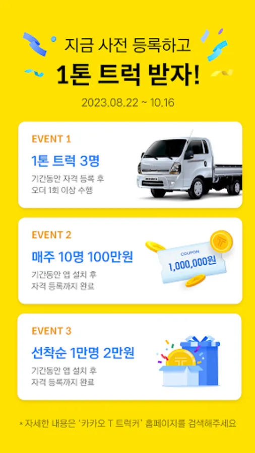 Participate in the pre-registration event now and meet Kakao T Trucker faster than anyone else.