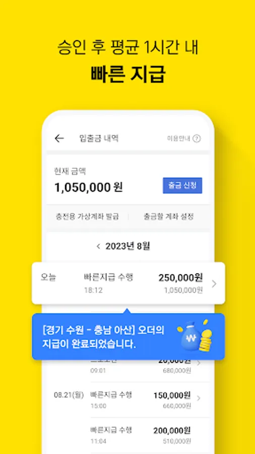 All settlement processes, such as tax invoice issuance, receipt management, and transportation fee payment, are automatically and quickly done!