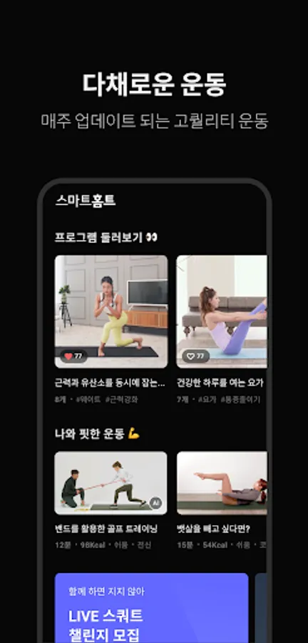 Smart Home pursues sustainable home training. With a special guest in the newly opened Live Challenge! You can continue exercising in a fun and energetic way. Don't miss out on the generously pouring lucky boxes and rewards when you achieve your goals! The crew can enjoy more than 500 kinds of colorful workouts and routinely choose the workouts that you frequently use in the storage box. Through real-time AI coaching, you can exercise accurately and effectively by yourself, so the crew needs only your mind!