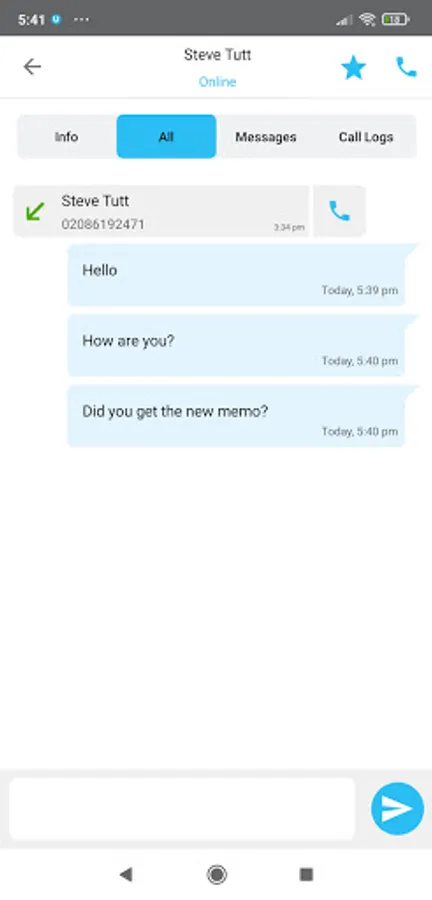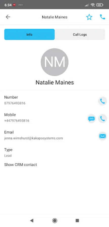 • Send SMS and Emails: Use the native apps to send SMS messages and Emails to contacts with a mobile number or email address in their profile.