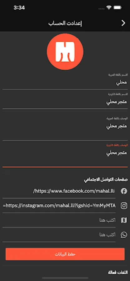 3. يمكن اضفة صورة ومعلومات المتجر مع امكانية ربط صفحات التواصل الاجتماعي