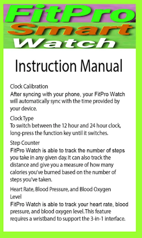 This application contains instructions on how to use and set up a fitpro smartwatch to make it easier for you to use this smartwatch.