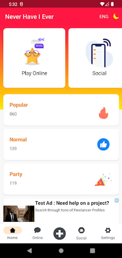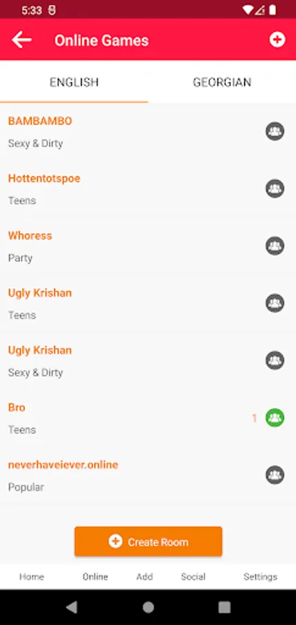 Create or join online rooms.