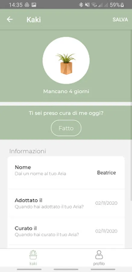 Give a name to your personal creation and enter the date of receipt. The application will remind you with an automatic notification when it's time to take care of your Kaki®, Marimino® or your little Aria® tillandsia