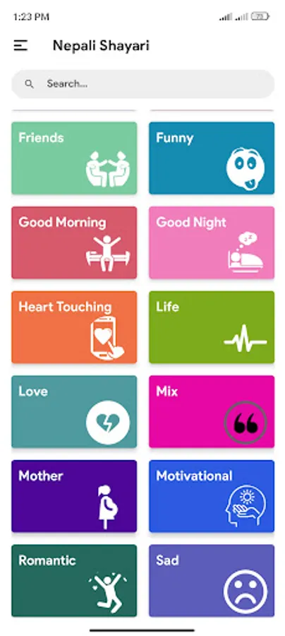 Nepali Sayari App Contains Category:
