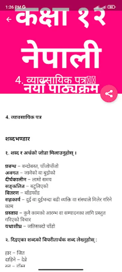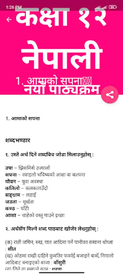 Class 12 Nepali Guide Book is a completely FREE educational application. This application contains a Complete Solution of all chapters of class 12 Nepali Guide based on current curriculum. Now Prepare class 12 Nepali from mobile easily.
