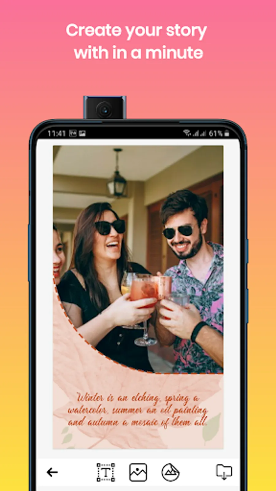 This Insta story maker truly brings your best IG story to life, and helps you retell and share your most memorable moments with friends. The best IG Story Editor is designed to make the best story art.