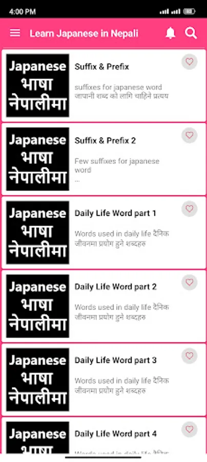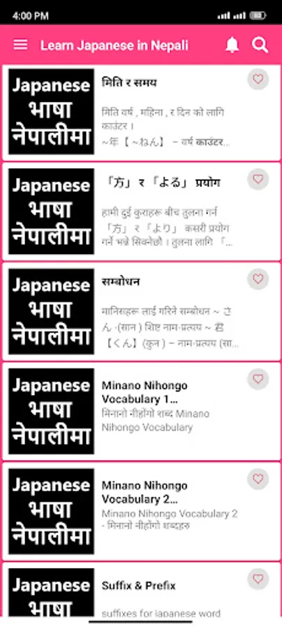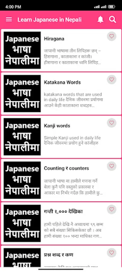 Learn Japanese in Nepali Book is a completely free educational app. This application contains collection of all nepali japanese bhasa. Now Prepare japanese bhasa in nepali from mobile easily.
