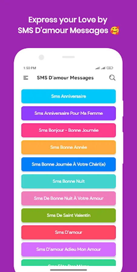 SMS D'amour Messages App Categories: