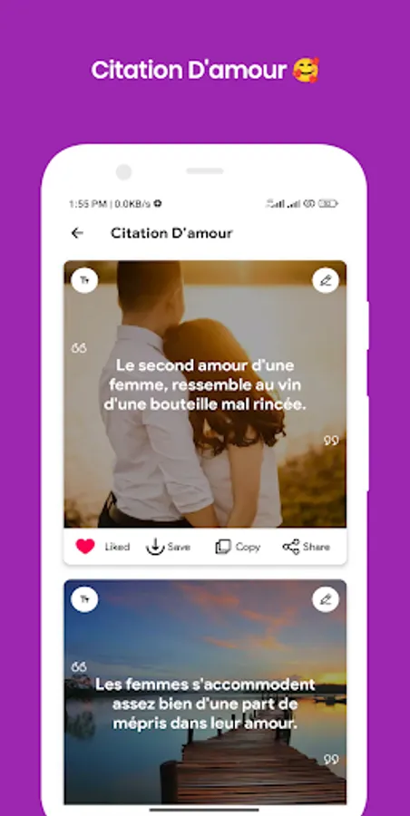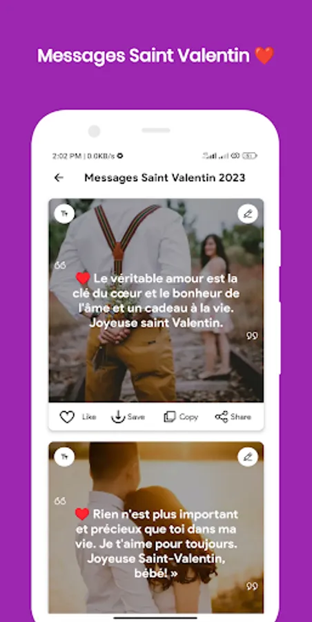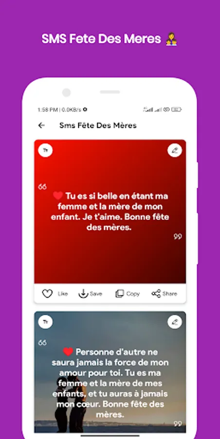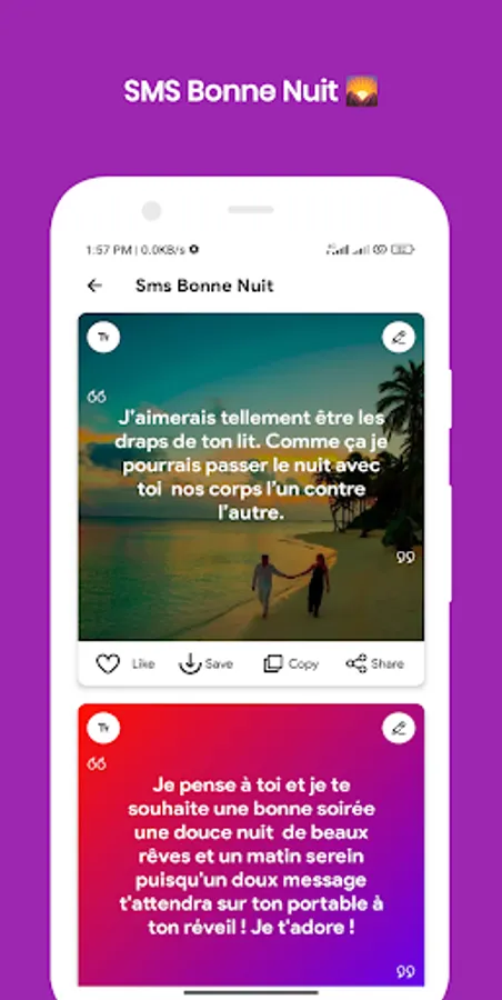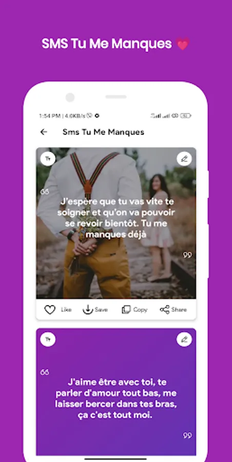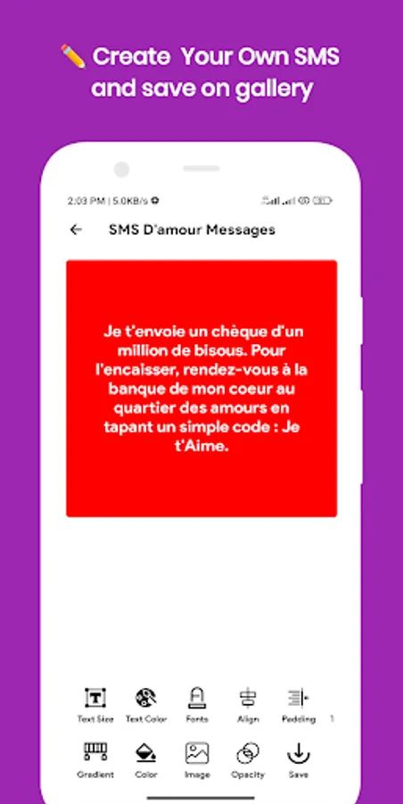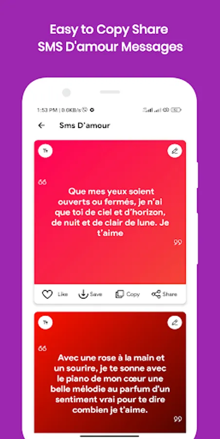 Express your love feelings through SMS D'amour touchants app.