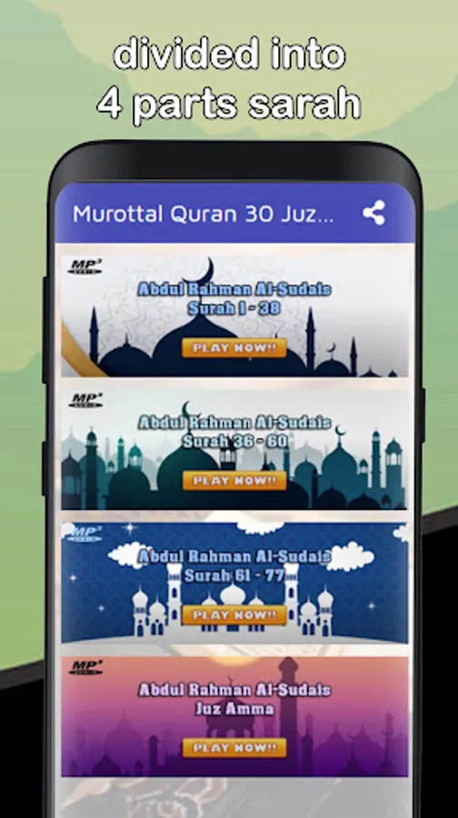 Apps Murottal 30 juz The Murottal Quran is a recitation of the holy Quran in Arabic, which is divided into 30 juz (parts). The Quran consists of 114 surahs (chapters) and 6,236 verses in total. The Murottal Quran is widely used by Muslims worldwide as a tool for daily worship and spiritual guidance.