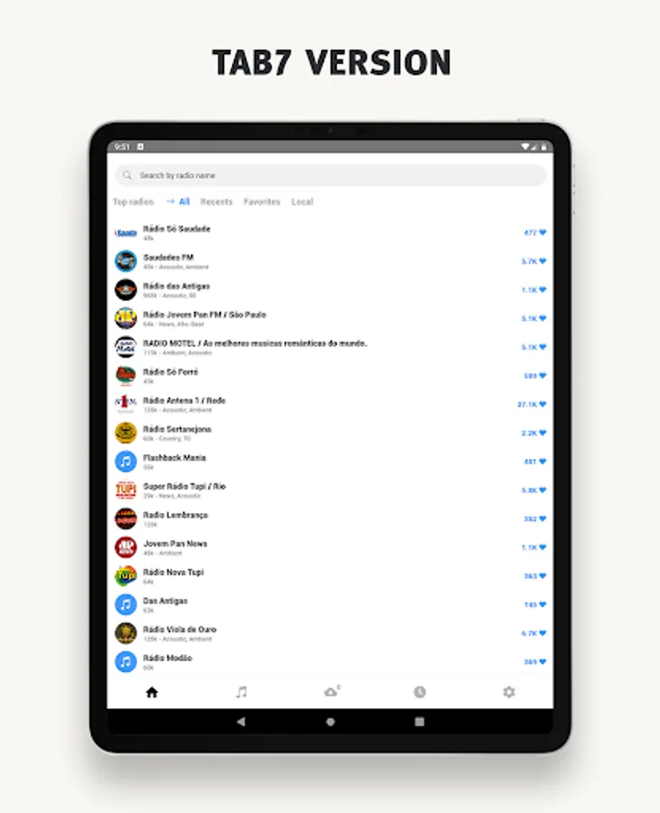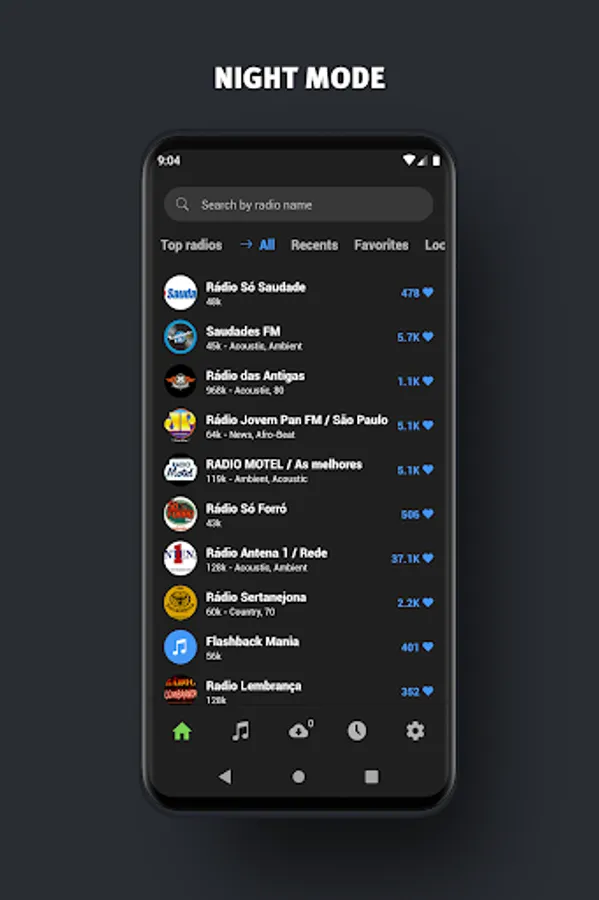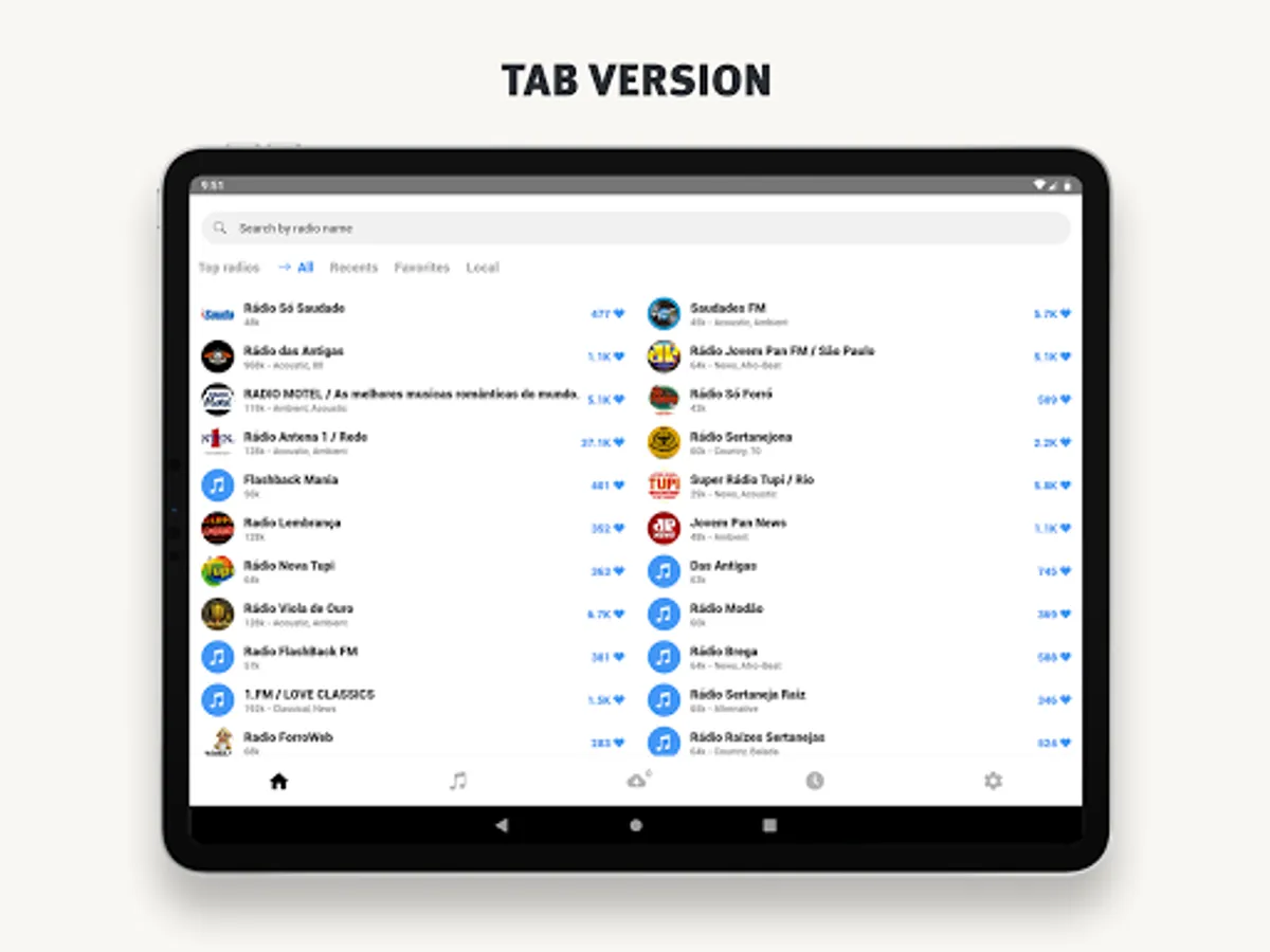 Immediately use the Radio Brazil application to listen to all Brazilian radios live such as 98, Anos 80, Metropolitana, Motel, Romântica MPB, FlashBack, Sertaneja 106.7, Churrasco Sertanejo, Saudade, Roberto Carlos, Jovem Pan, Corno, Super Tupi, Viola de Ouro, Antena 1 and many other popular radios to discover!