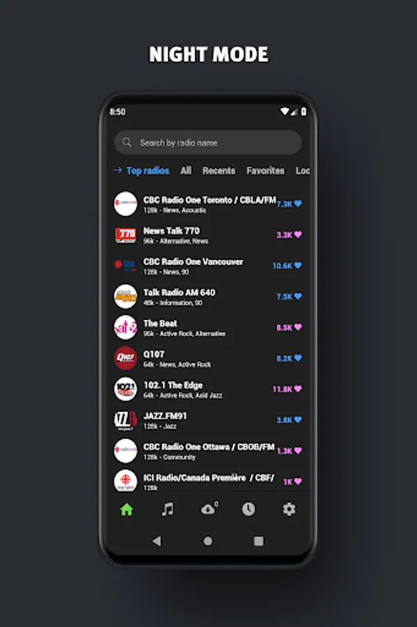 Immediately use the Radio Canada application to listen to all live Canadian radio stations such as CBC One, 680News, Kiss 92.5, Classic rock 101, Newstalk 1010, JAZZ.91, Boom 97.3, Première Montréal, Talk 640, Country 104, 102.1 The Edge, Hits 93 Toronto, JUMP!, Fresh, INews 880 and many other popular radio stations to discover!