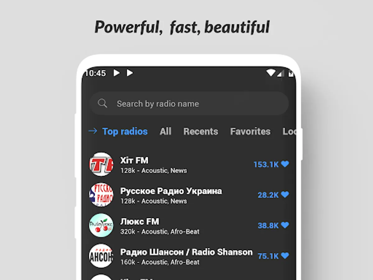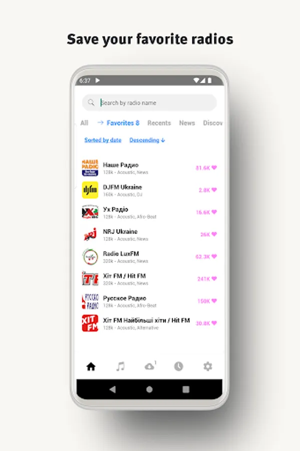 - Easily add your favorite radios to your favorites list