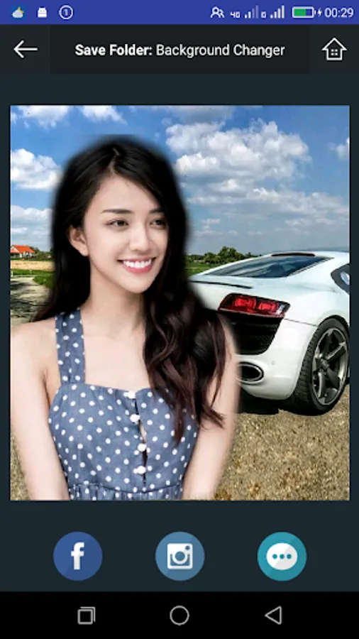 ✓ Save the photo and You can share your new photo with beautiful background at Facebook, Instagram or anywhere.