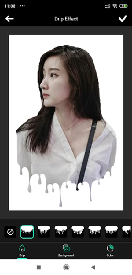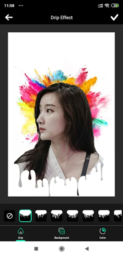 Pics Photo Editor provides many fun dripping effects in various sizes and colors. Choose one and add it as you wish to on your favourite selfie, quickly change the scale and position of the dripping effect Use different background colors to tailor your selfie for your drip effect.