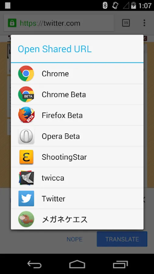 This is a tool to open a shared URL with a browser selected from a list of ones in a dialog created by this application.