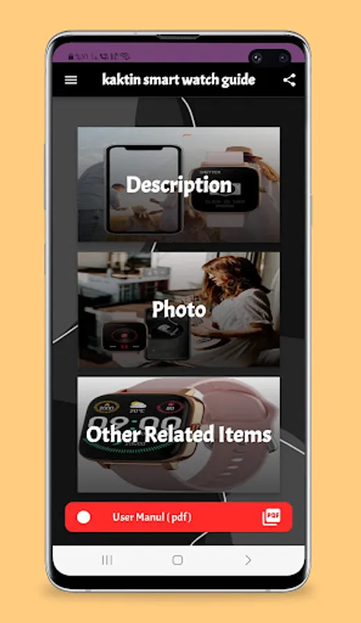 app we supported many sections of content that will let you now more information about kaktin smart watch guide