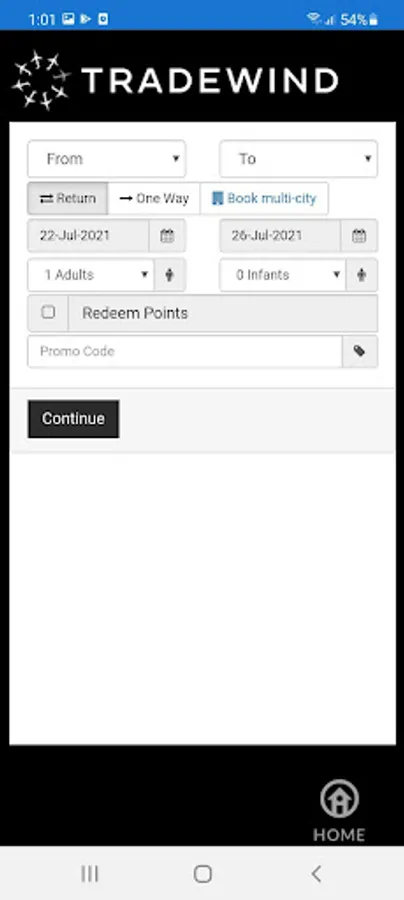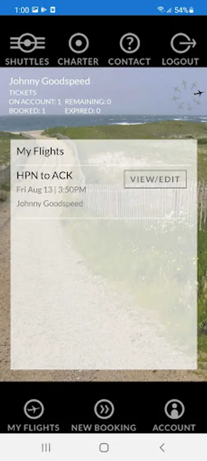 Ticket book members can login to their account to manage flights and purchase more tickets.