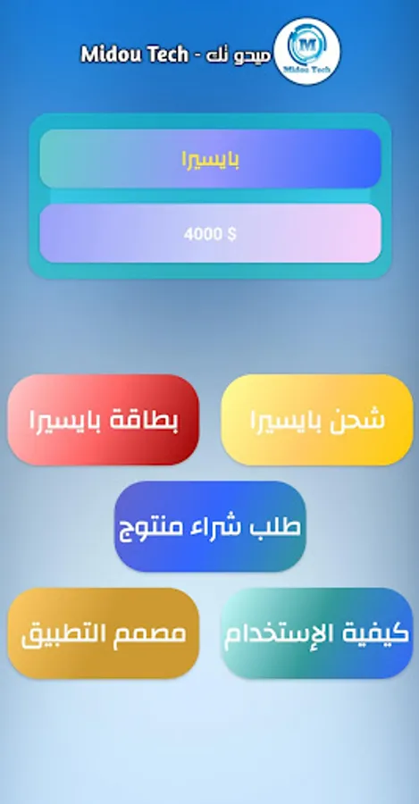 - Mido Tak - application for electronic services came in order to keep up with the needs of Algerians interested in the world of shopping, especially payment and electronic withdrawal services.
