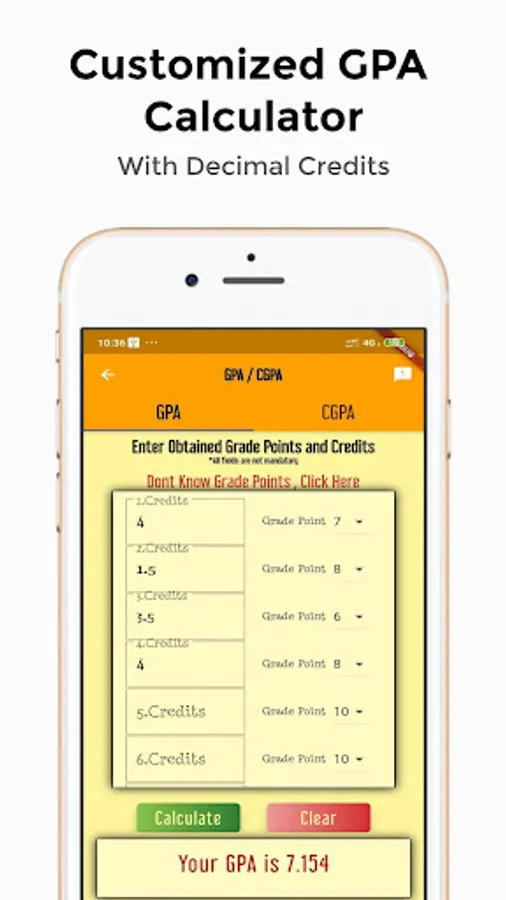 This Single App is used to calculate GPA / CGPA / Grade / Internals. This app also supports decimal credits in GPA Calculator.