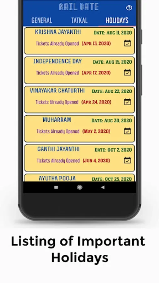 It has both GENERAL and TATKAL Ticket Booking Open Calculator and Event Adder.