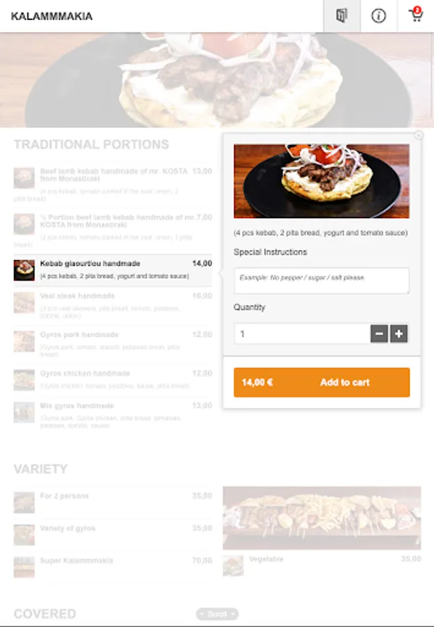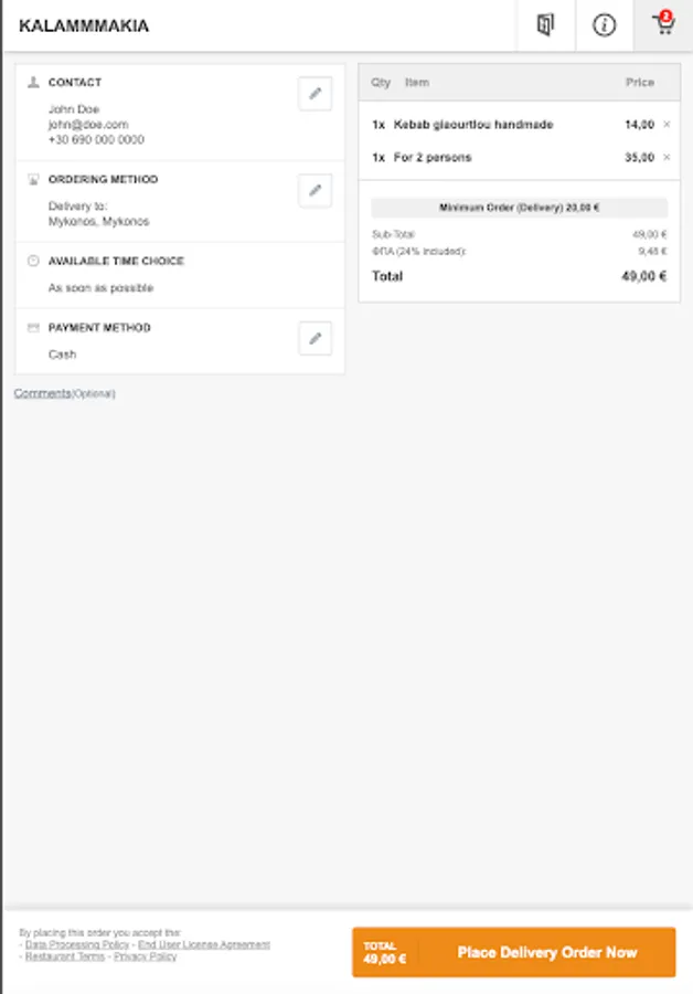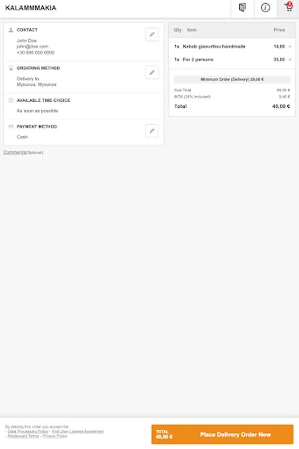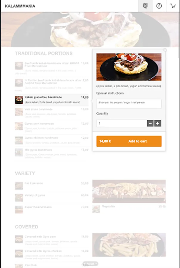 Your order from Kalammmakia Grill House in Mykonos is just a few taps away.