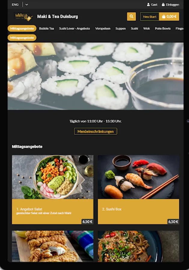 Maki & Tea ist die ultimative App für Essenslieferungen, die Ihr Verlangen nach köstlicher japanischer Küche und erfrischendem Bubble Tea stillt. Mit nur wenigen Fingertipps auf Ihrem Mobilgerät können Sie durch eine breite Palette von Menüoptionen stöbern und sich Ihre Lieblingsgerichte und -getränke direkt an Ihre Haustür liefern lassen. Ganz gleich, ob Sie auf der Suche nach traditionellen Sushi-Rollen oder einzigartigen Fusionsgerichten sind, Maki & Tea bietet das Beste aus beiden Welten. Erleben Sie Komfort und Qualität mit Maki & Tea noch heute.