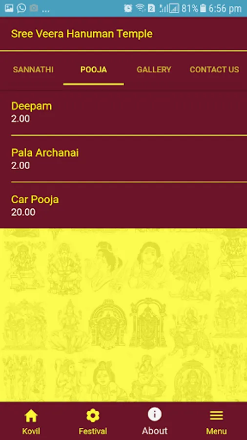 in futures of app:- Devotee can easily search and select favorite temple make as home page,Devotee can add list of temple to his favorite page ,Devotee can check his Ubayam status, Monthly festival information ,Daily Rasi information and temple navigation and also help to tourist for visiting temples.