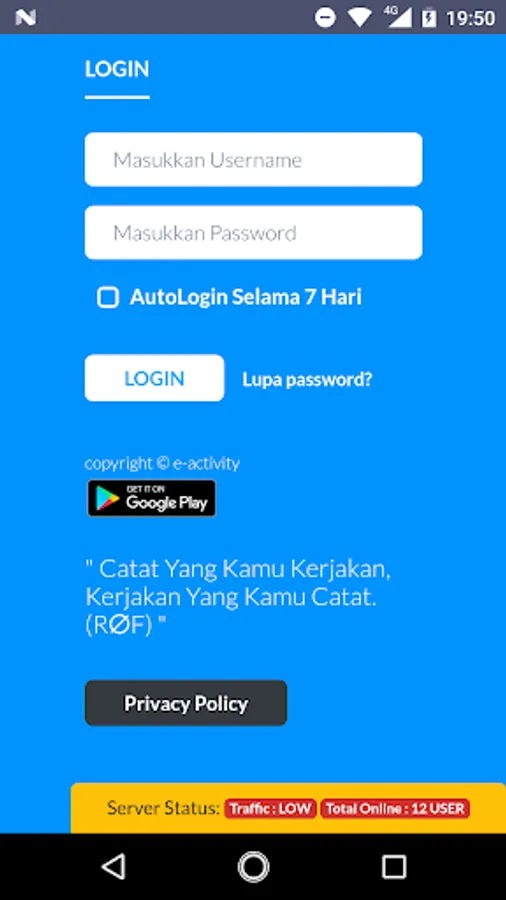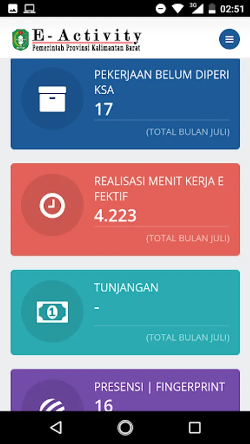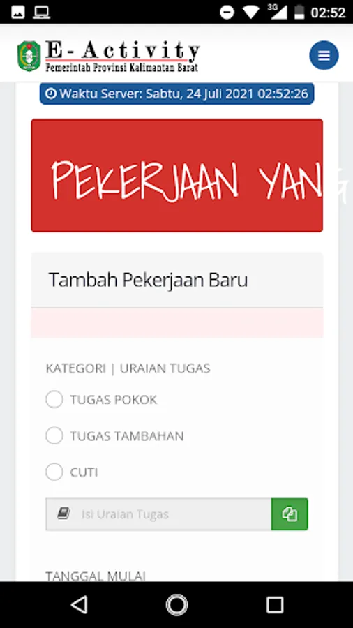 E-Activity - Working Activity Summary. WEST KALIMANTAN PROVINCE GOVERNMENT. E-Activity (Work Activity Information System)