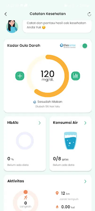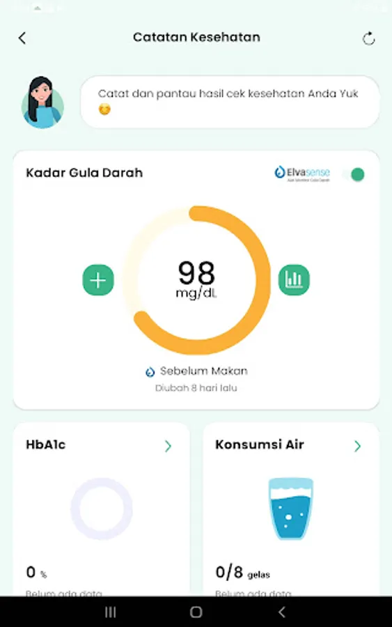 Monitor your health progress comprehensively for targeted therapy planning by your doctor. Now integrated with Elvasense automatic glucometer, which makes it easy to record blood sugar data and can be synchronized with Google Fit for step data on activity data logging.