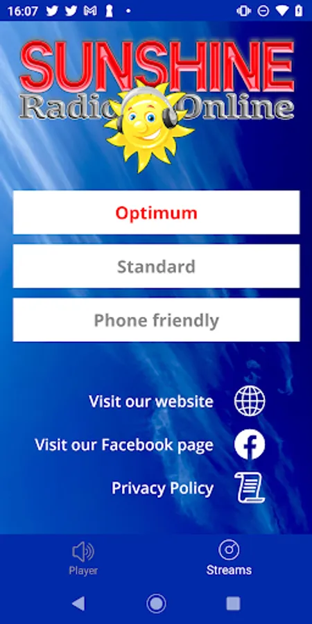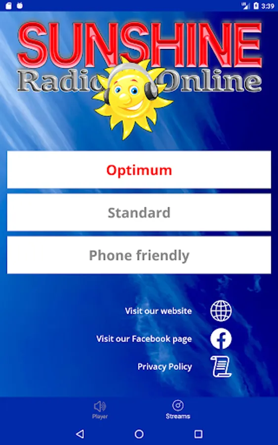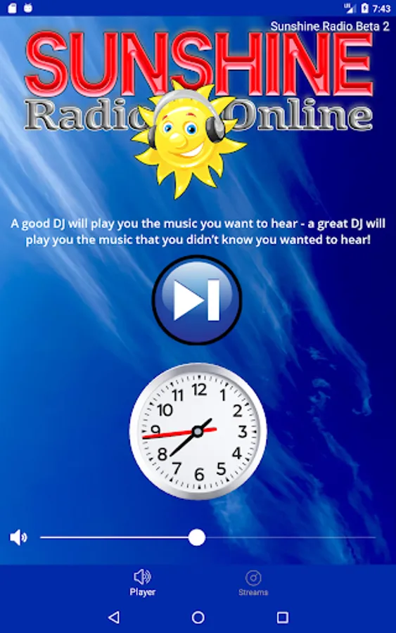 Sunshine Radio Online is a non-profit Radio Station that puts DJs in charge of the music - we play all decades and all styles - this app allows you to listen, and to contact us via email.