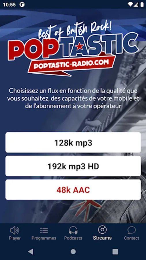 From classic 128k to 192k HD sound via 48k AAC to listen to the radio even with a weak connection.