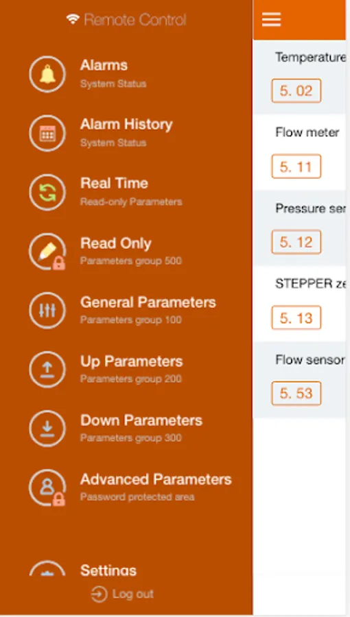 The application allow, technical operators and maintenance workers, to access in all parameters and monitor the status of the system in real time.