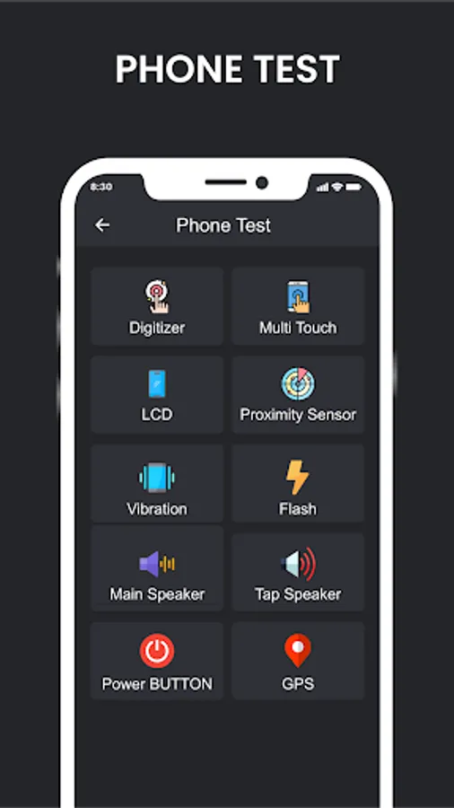 Phone testing feature allows you to test your phone's wifi, LCD, touch, speaker, black screen, vibration, mic and flash.