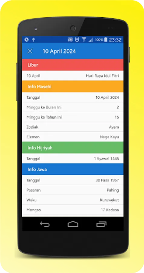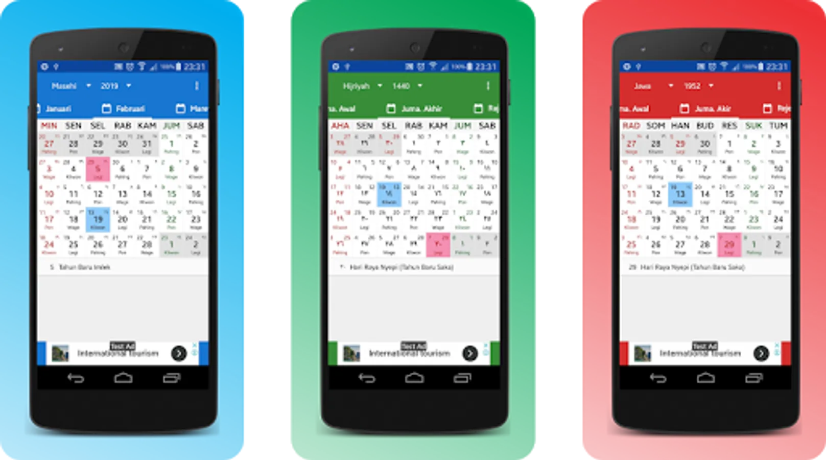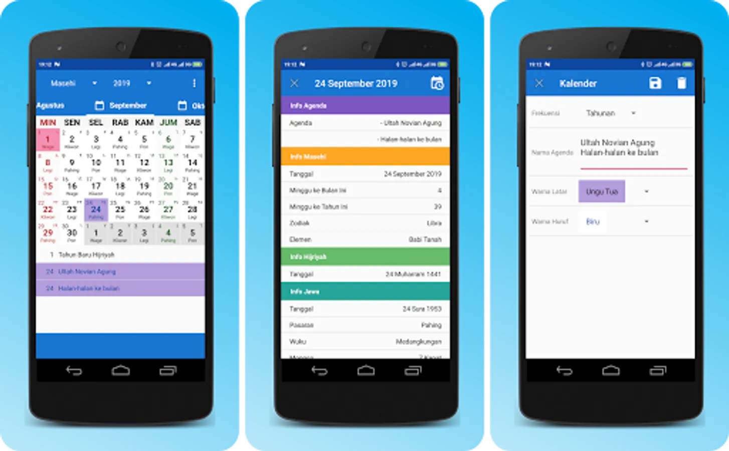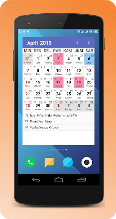 With an attractive appearance and very easy to use. It's easy to switch calendar types from the Gregorian calendar to the Hijri calendar or to the Javanese calendar.