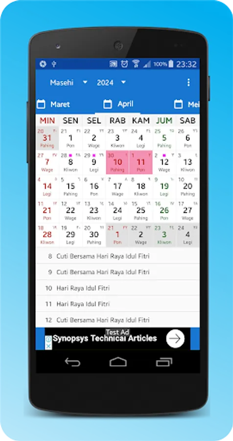 The Indonesian calendar is light, fast, complete, accurate and friendly. Equipped with Indonesian national holidays and joint leave according to the SKB (Joint Decree) of 3 ministers. All year calendar available: 2018, 2019, 2020, 2021, 2022, 2023, 2024, 2025 to 2100.