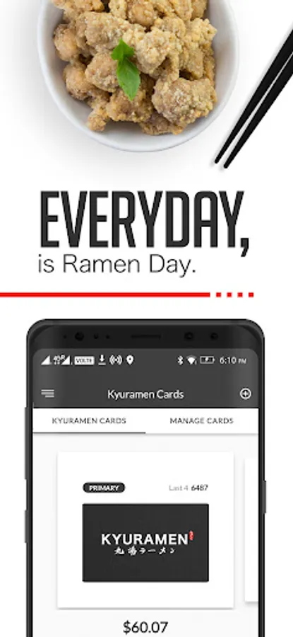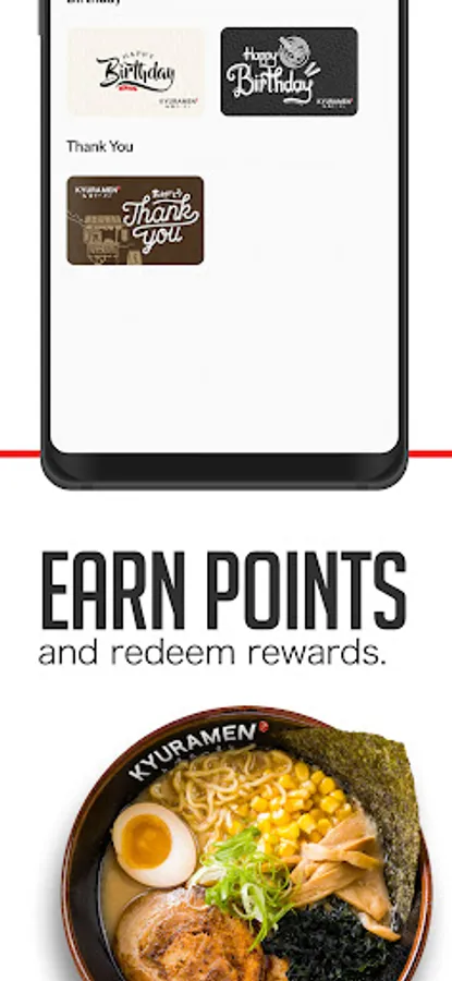 Welcome to the Kyuramen app. Order ahead for ramen and earn points for free appetizer!