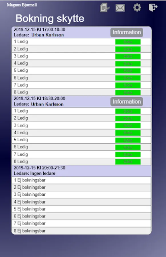 • Schedule / booking of courses