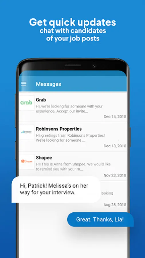 ✓ Chat with your job candidates and get notified of new messages, so you can respond lightning fast.