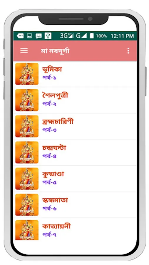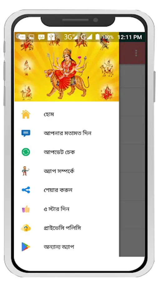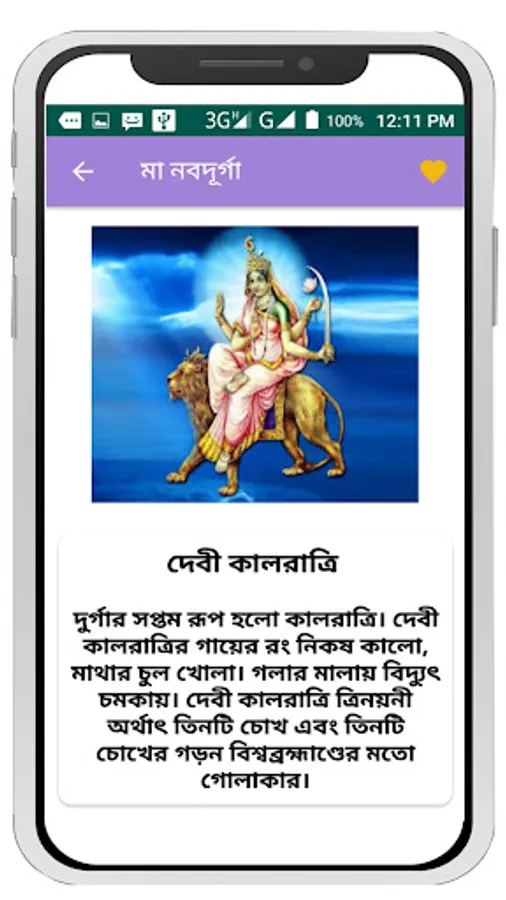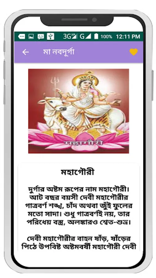 The app talks about the nine forms of the traditional religious mother Navadurga.