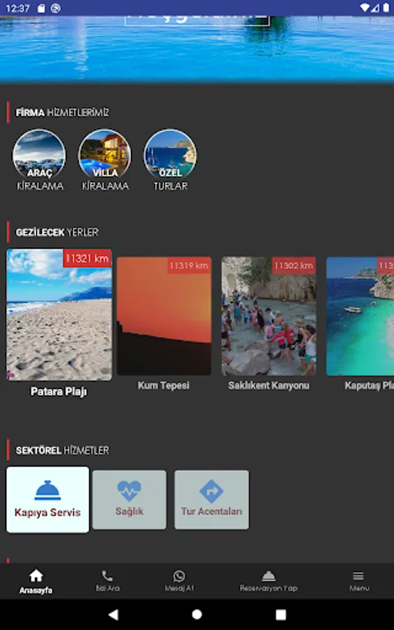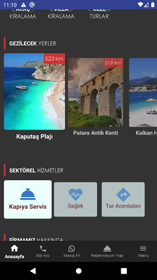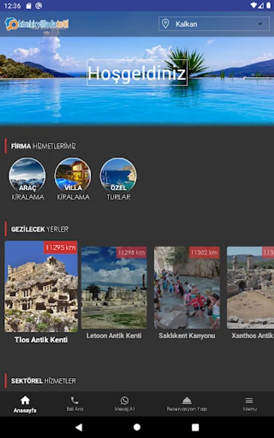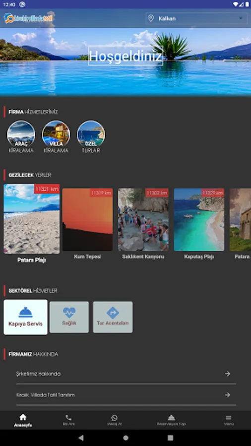 Our company, which operates in the Kalkan region where the company headquarters is located, has developed this application specifically for its guests staying in this region. Regarding the Kalkan Region;