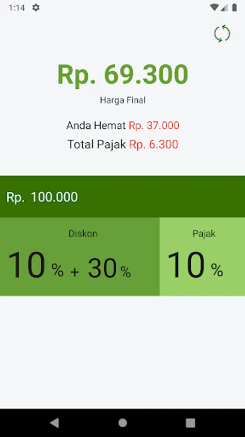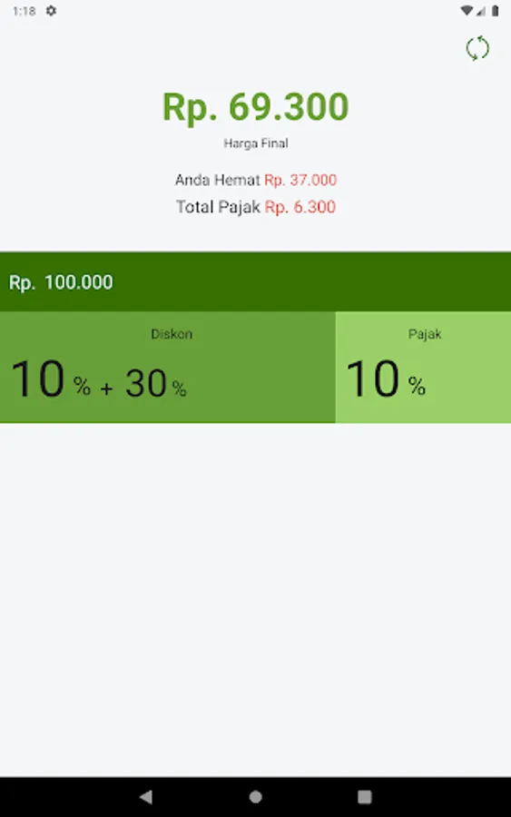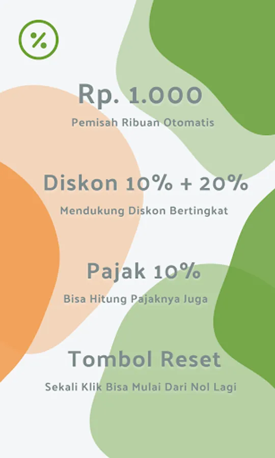 You can use this discount application as a discount calculator or make it easy for you to calculate regular discounts, multilevel discounts and taxes when you shop or just eat at a stall that usually has a 10% tax right, so I don't need to ask the ladies at the store what price after discount you just use this application.