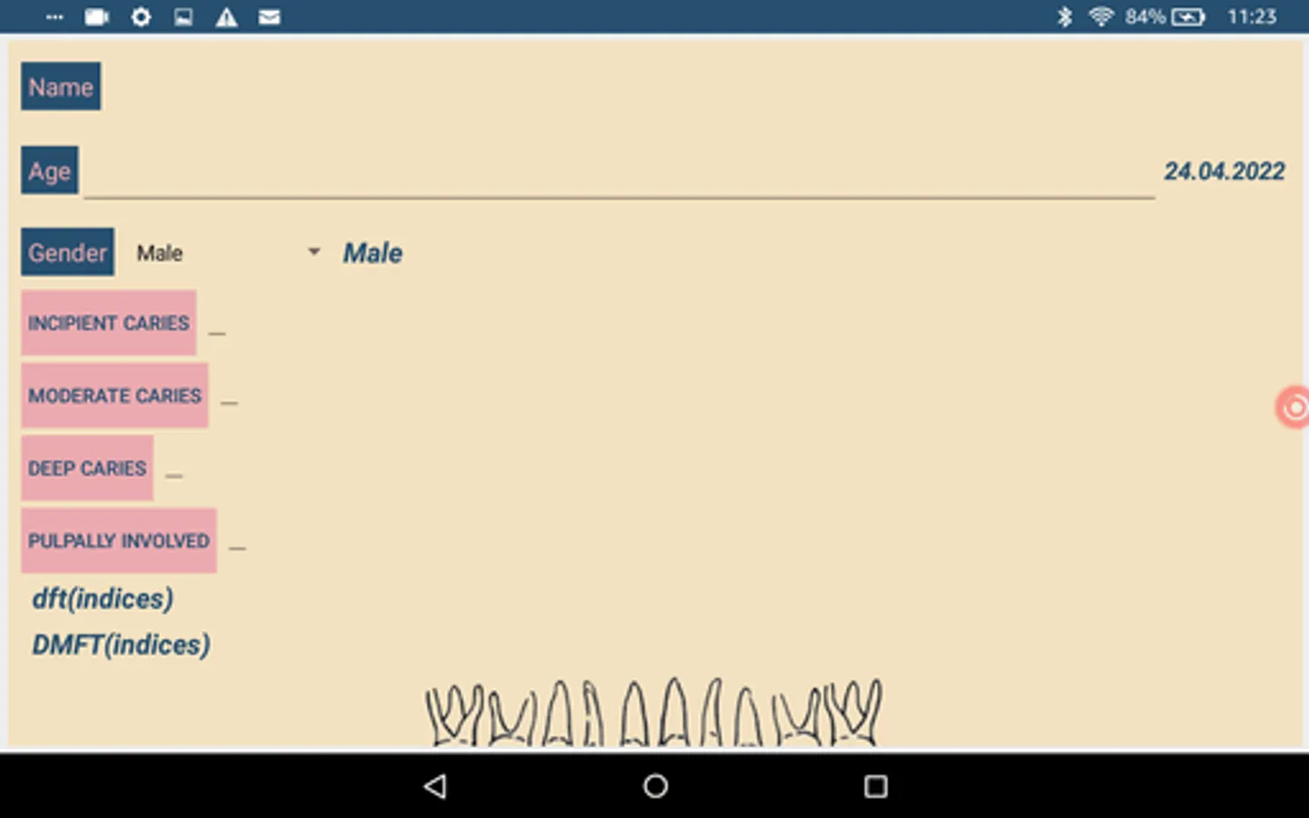 An Application to conduct Dental camps and Epidemiological studies, that helps to record oral health indicators details as parameters and further convert them to Excel sheet in just a click subsequently perform statistical analysis easily for epidemiological studies.