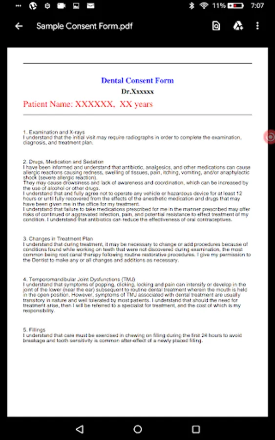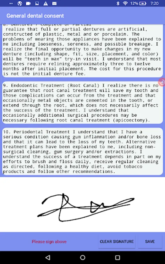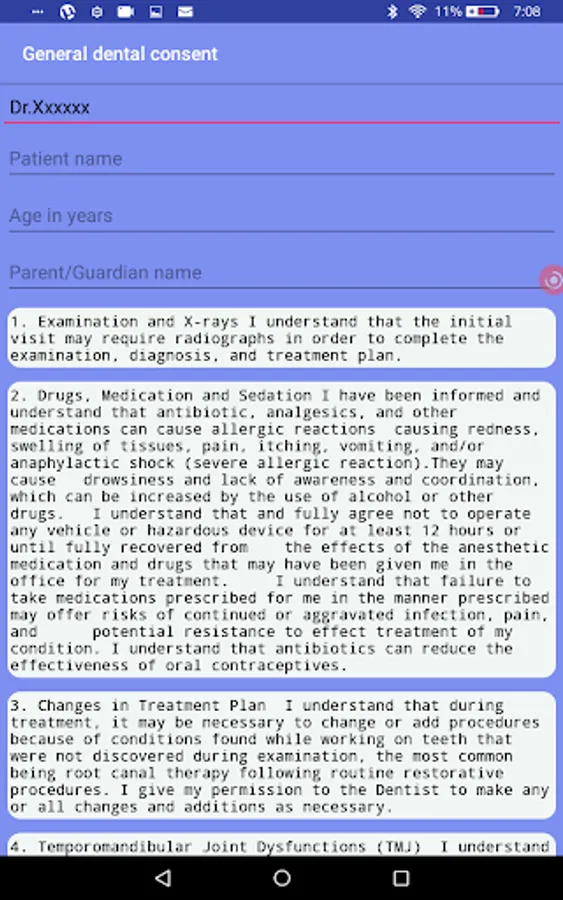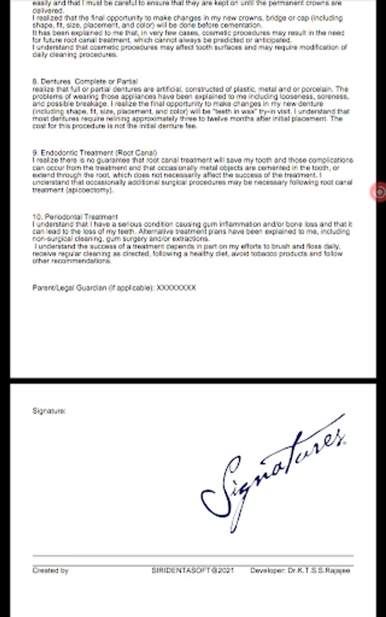 A simple and handy application to take informed consent from patients for all kinds of dental treatments and saved as PDF in device storage thus avoiding paper, printing cost and storage.