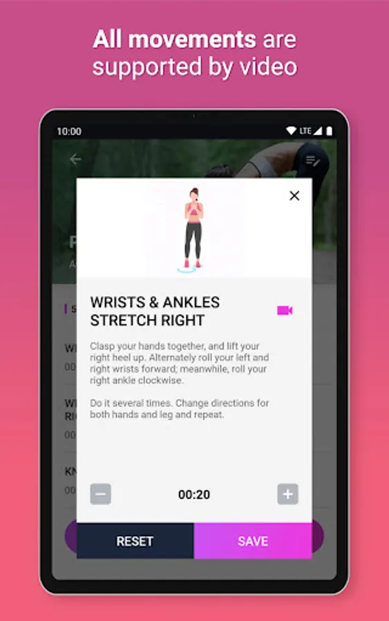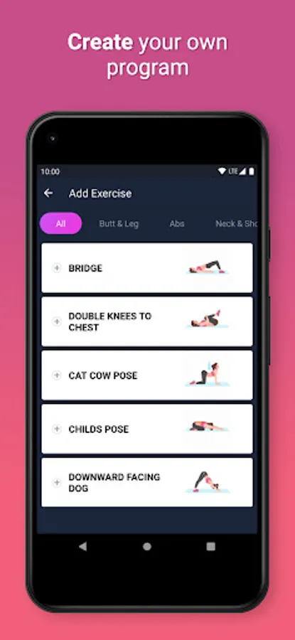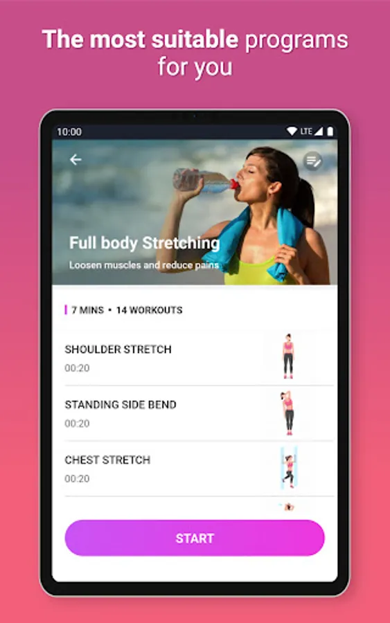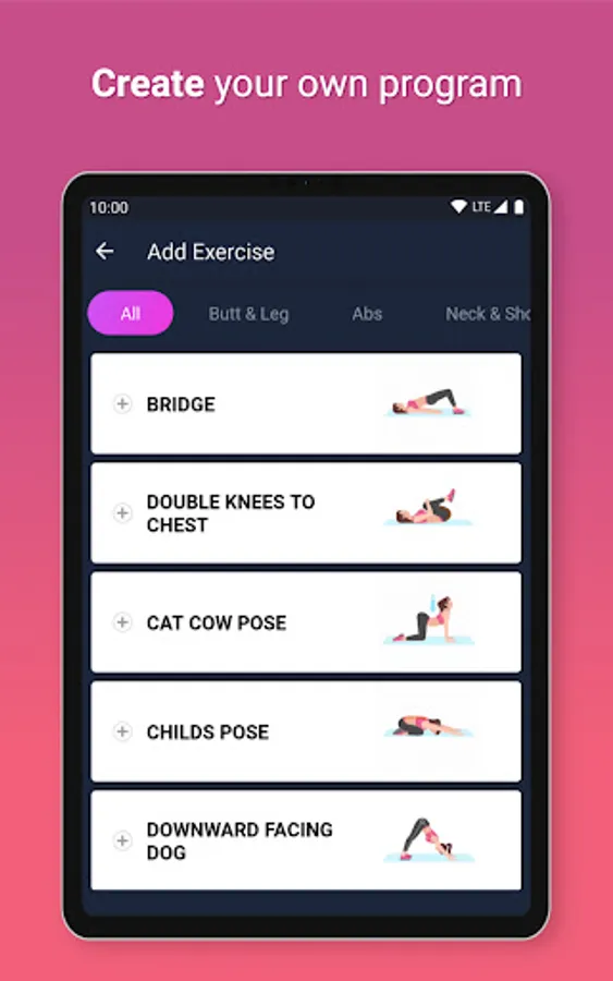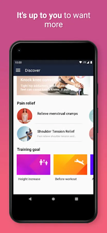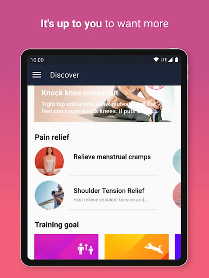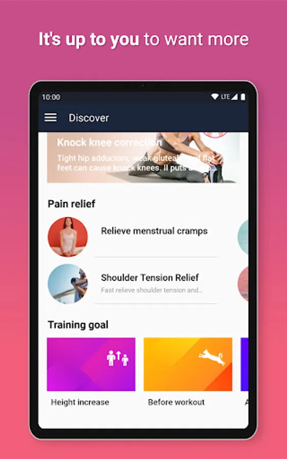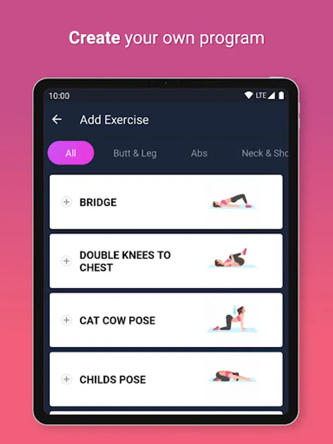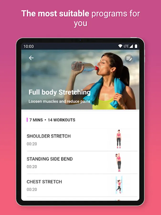 Different programs for different needs. You can relieve menstrual cramps. You can increase your height. Before or after workout exercises. Exercises for the office environment. Face yoga? You can slim down your face. You can get rid of double chain. Fat burning? Checkout 20 minutes body calorie burner. Lose fat without jumping! Burn 100 calories program is available for you. Choose a short or long workout according to your situation.