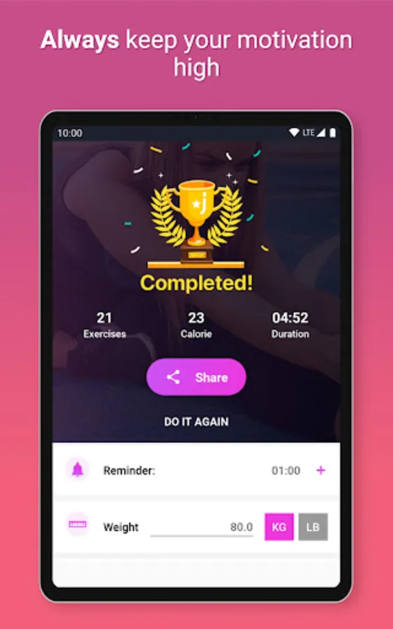 We set a personal goal for the best body shape. We follow your schedule and send you reminder notifications at certain times. Thus, your success rate increases!